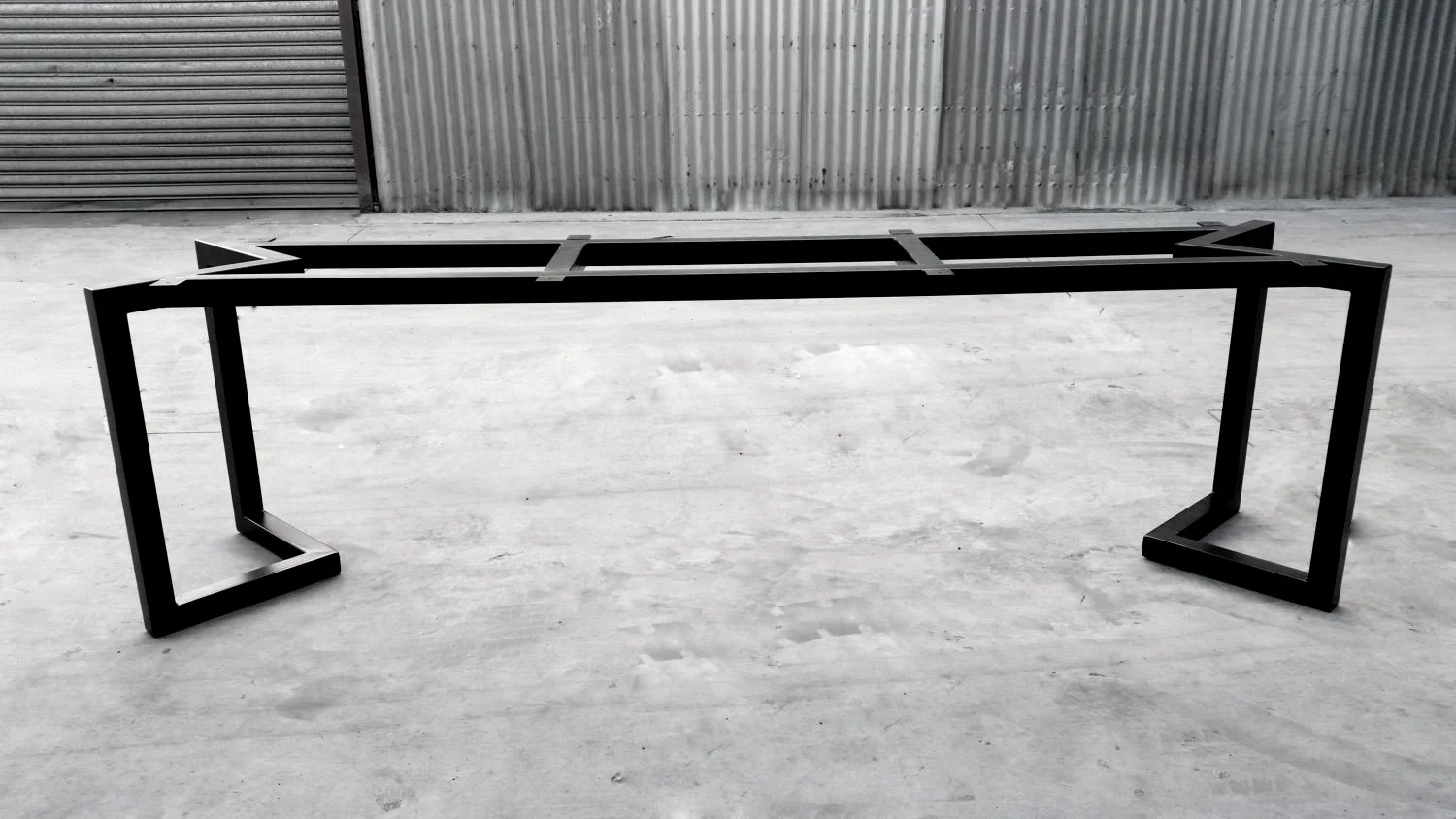 The Diagonals table base has a unique look with the legs meeting the floor at different points. Its a criss-cross design that looks great on large table tops such as timber slabs.